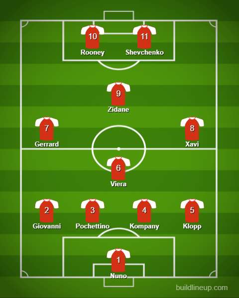 The front two are arguably one of the greatest strikers in football history. Rooney’s career as a manager hasn’t gone quite well during his stint with Derby County, but he did many wonders as a player.
